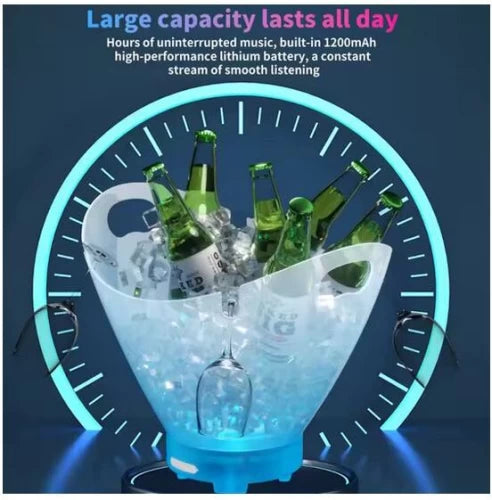 Take your parties to the next level with the LED Ice Bucket with Bluetooth Speaker – the perfect combination of style, function, and entertainment. This color-changing illuminated ice bucket not only keeps your drinks cold but also sets the mood with 7 vibrant gradient LED colors and built-in Bluetooth connectivity for your favorite music.