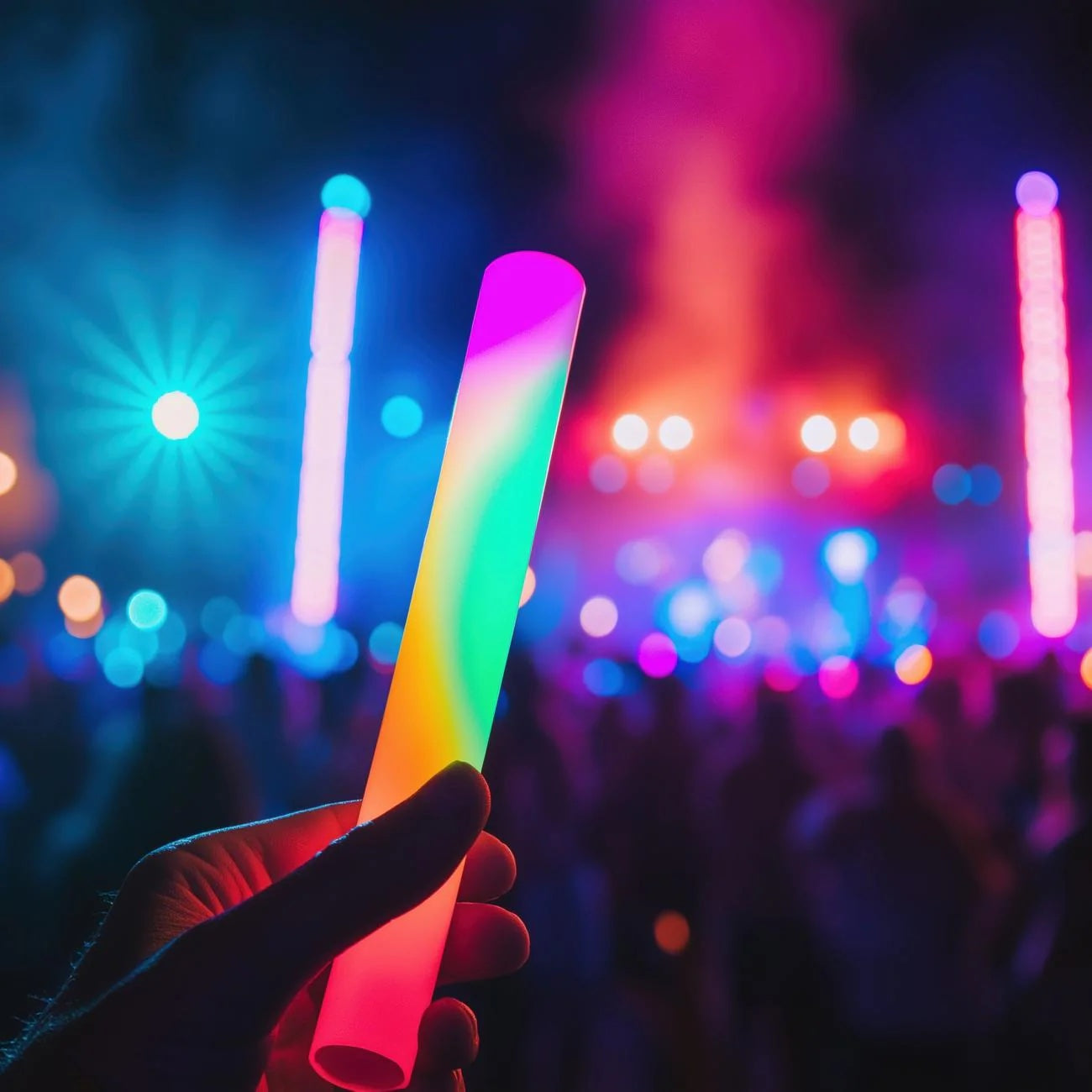 Lightweight, safe, and packed with vibrant LEDs, these sticks switch between flashing, strobing, or steady glow to match the vibe. Bright colours light up the night, The soft foam construction makes them perfect for waving, tossing, and dancing — no worries if they bump around.